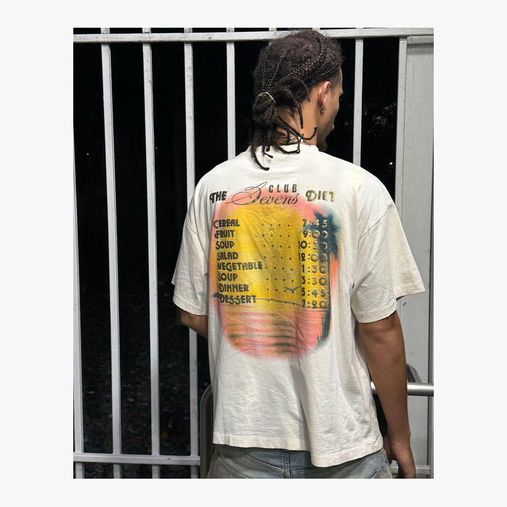 Das Triple Sevens Longevity T-Shirt in White bringt sommerliche Florida-Vibes mit einem luxuriösen Resort-Twist zusammen. Auf der Vorderseite steht ein farbintensiver Flamingo-Print im soften Airbrush-Style im Mittelpunkt. Die tropische Szenerie mit Palmen, Sonnenuntergang und Wasser-Elementen verleiht dem Shirt eine lebendige, fast postcardartige Ästhetik. Der „Longevity Club“ Schriftzug mit subtil glänzendem Finish rundet das Design edel ab. Die Rückseite greift das Club-Thema mit dem „The Club Sevens Diet“-Print auf. Die verspielte Menü-Optik mit Zeitangaben kombiniert humorvolle Resort-Referenzen mit einem auffälligen Farbverlauf im Hintergrund. Glänzende Details sorgen für einen besonderen Premium-Effekt und setzen zusätzliche Akzente. Der lockere, leicht oversized Fit macht das T-Shirt zum perfekten Statement-Piece für warme Tage. Ein Design, das Miami-Lifestyle, Humor und ikonische Bildsprache in einem modernen Streetwear-Item vereint.Bei HYPENEEDZ erhältst du ausschließlich neue und 100% originale Produkte.