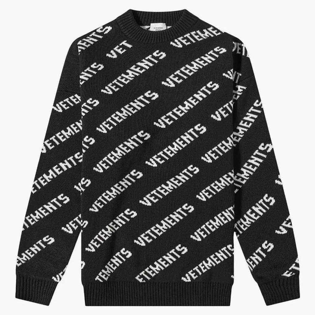Vetements Allover Logo Crew Sweat Black/white
