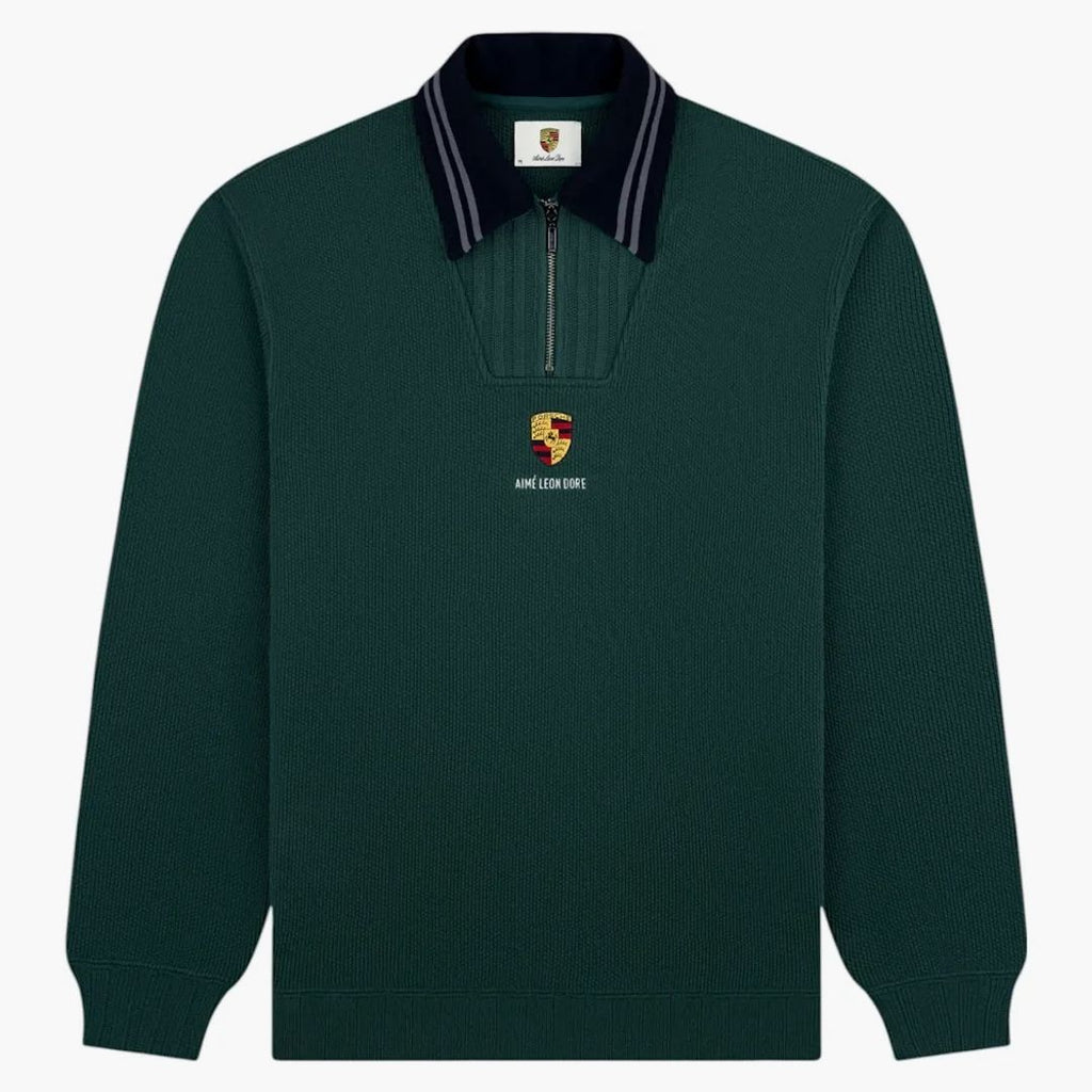 Aime Leon Dore X Porsche Jacquard Collar Quarter Zip Pullover Green