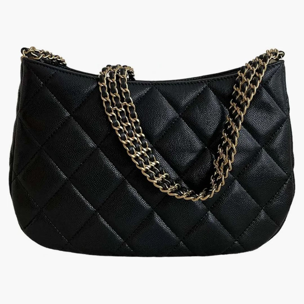 Chanel Grained Calfskin 24c Hobo Bag Black (as4612)