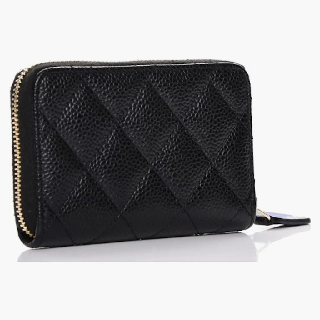 AusverkauftChanel Zip Coin Purse Quilted Caviar Gold-Tone Black