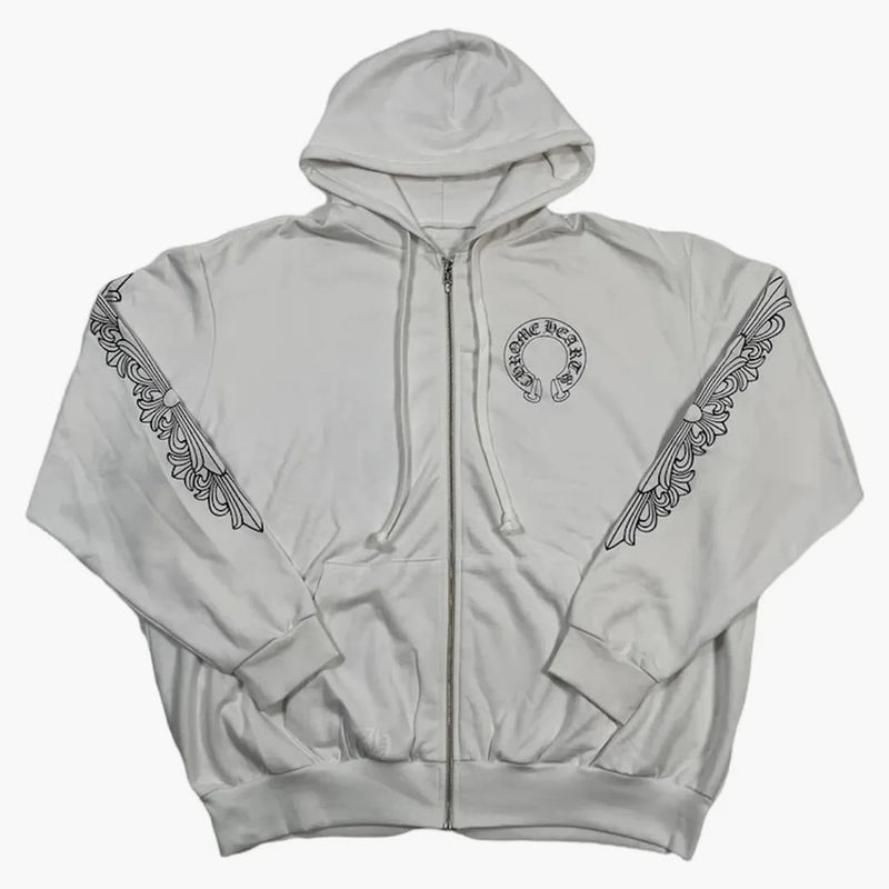 AusverkauftChrome Hearts Horseshoe Floral Zip Up Hoodie White